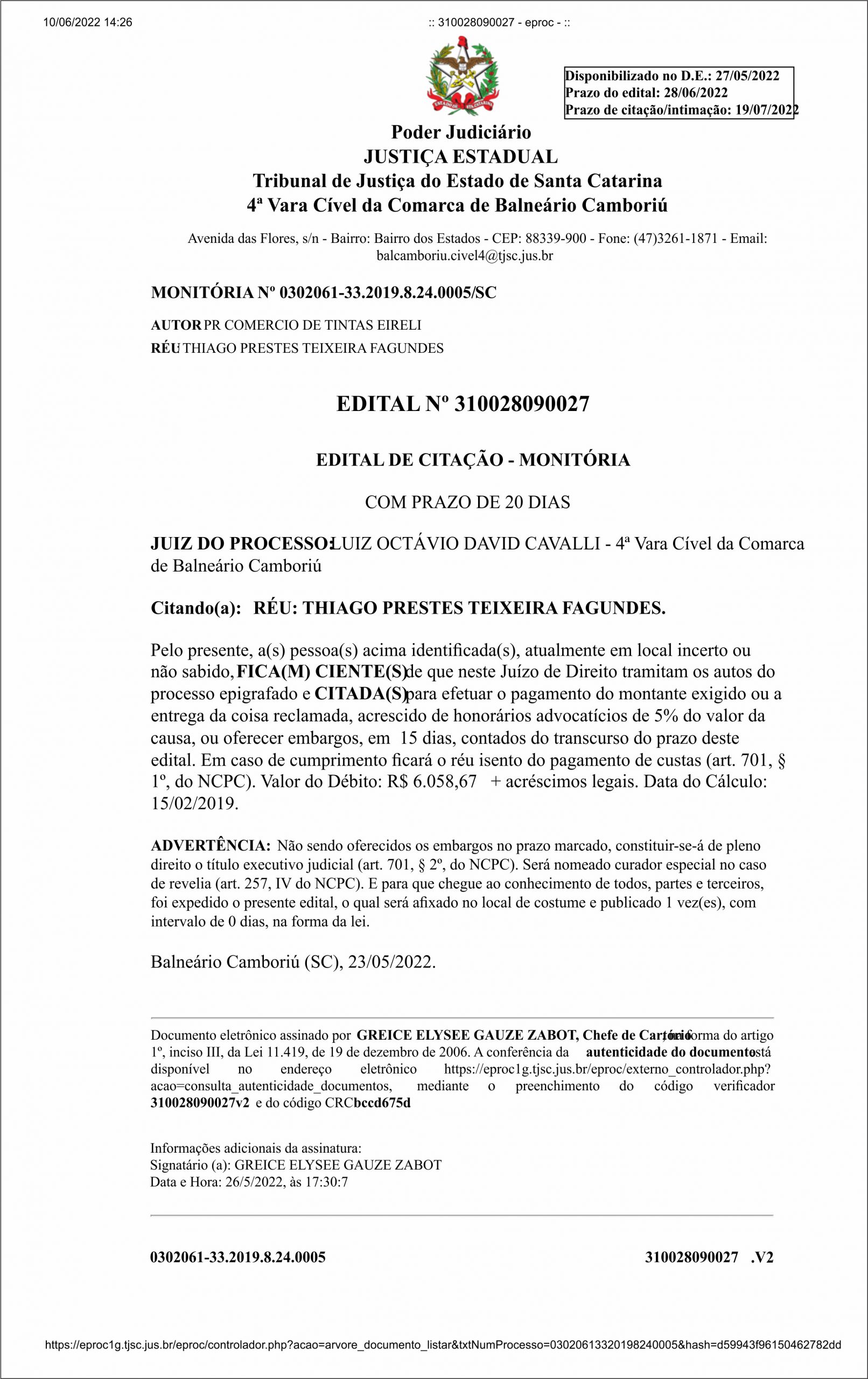 EDITAL Nº 310028090027 – EDITAL DE CITAÇÃO MONITÓRIA – PRIMEIRA PUBLICAÇÃO