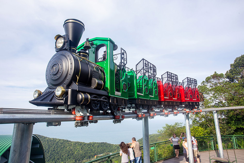A atração Fantástica Floresta do Parque Unipraias conta com um equipamento de lazer exclusivo: o Trem Suspenso da Floresta. Agora, além de percorrer a pé pelas trilhas lúdicas e interagir com o vilarejo dos duendes, árvores animadas e playground da atração, visitantes de todas as idades vão poder, ao final, embarcar em um passeio incrível e divertido. Os passageiros vão percorrer a Estação Mata Atlântica do Parque Unipraias a bordo do trem – suspenso a 3 metros de altura – a locomotiva possui três vagões, com capacidade total para 14 passageiros por passeio, fazendo o trajeto em uma velocidade média de 10 km/hora, com partida e chegada na Estação ao lado da Loja da Fantástica Floresta.